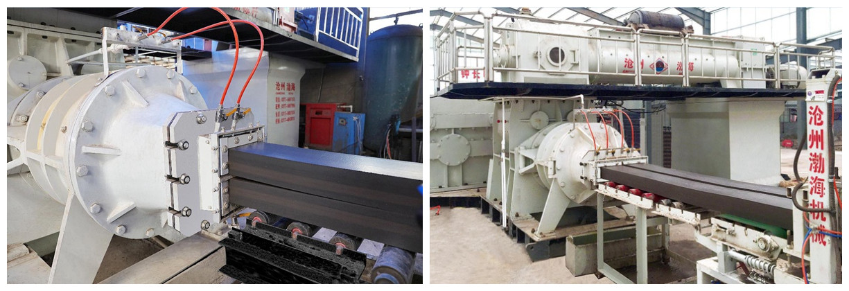 本機(jī)擠出壓力大,真空度高,擠出泥條密實(shí),外觀整潔。完全適合一次碼燒工藝的要求,生產(chǎn)率高,成型含水率低,降低了在生產(chǎn)中的能耗和損失。是生產(chǎn)全煤矸石、高摻量粉煤灰、頁(yè)巖以及劣質(zhì)沙土磚的理想設(shè)備。