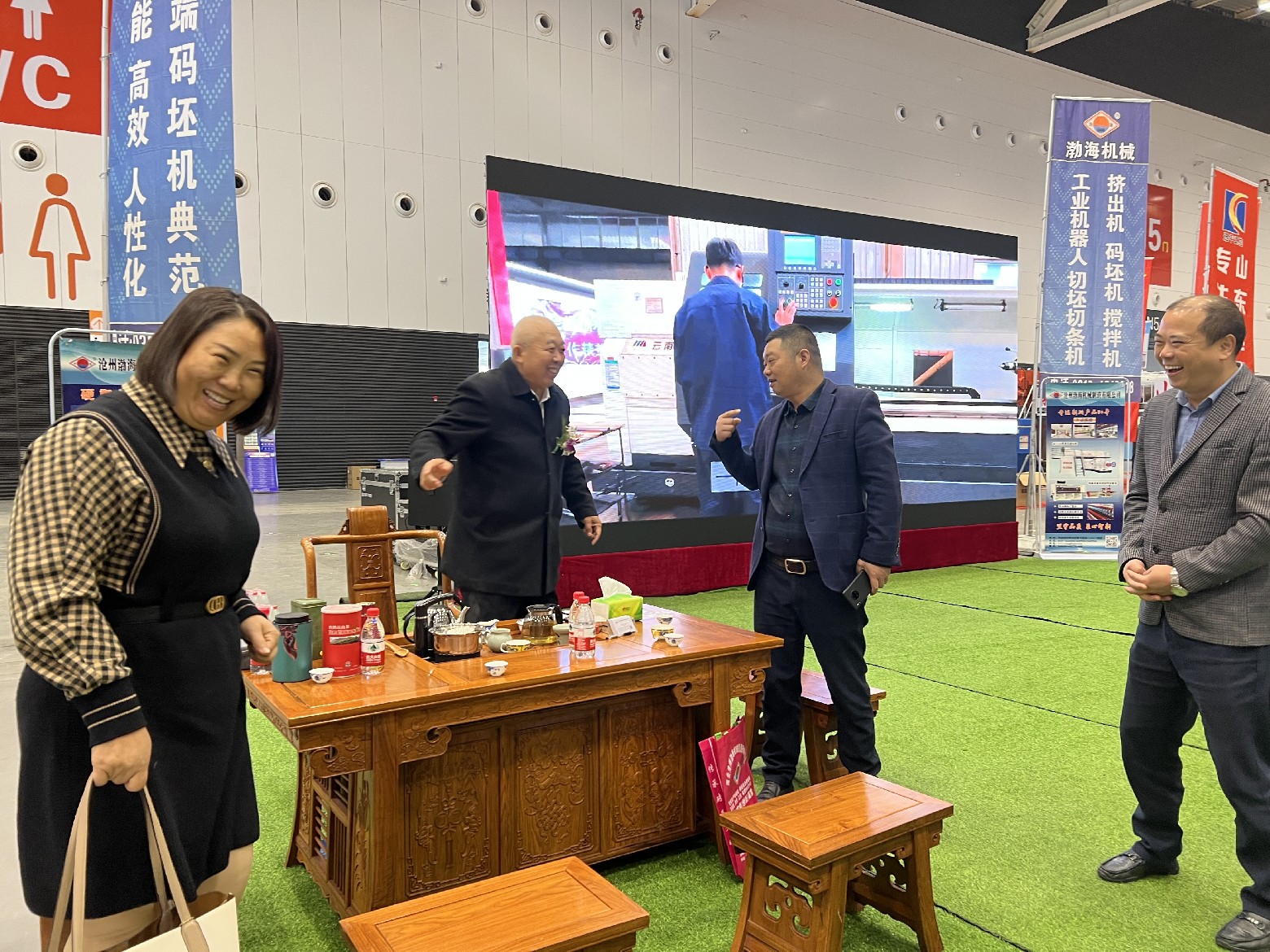 行業(yè)領導來到渤海機械的展廳,和董事長張加祥合影并進行親切交談,對我公司的一直以來的工作予以肯定,希望渤海機械作為磚瓦裝備生產(chǎn)制造的資深企業(yè),再接再厲,繼續(xù)為行業(yè)的發(fā)展做出突出的貢獻。